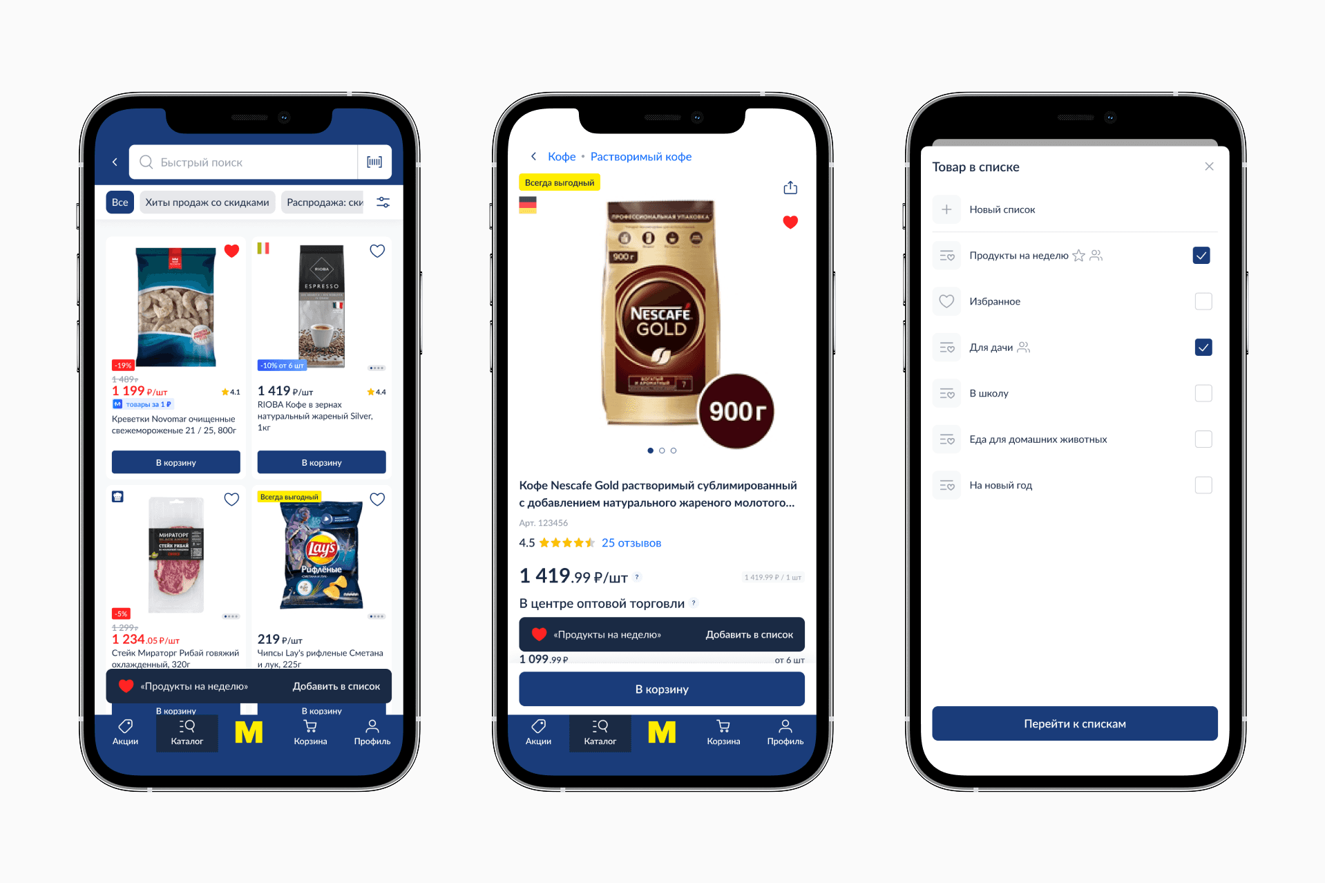 Товар можно добавить в список из любой точки добавления в избранное (рекомендации, каталог, деталка товара)
