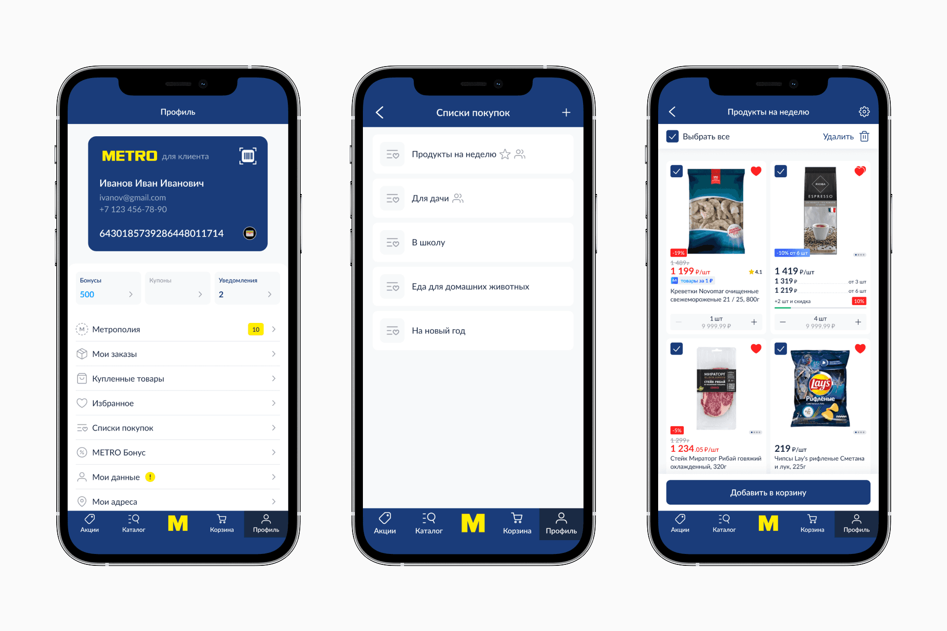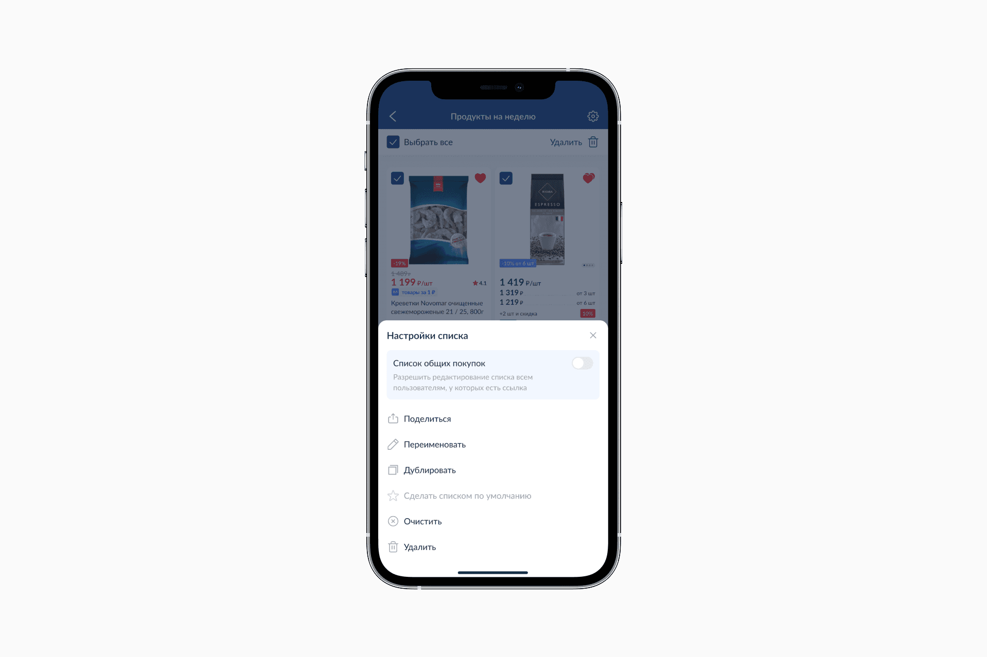 В самом списке продумали элементы детального управления: можно выбрать все товары или часть, регулировать количество каждого товара и удалять